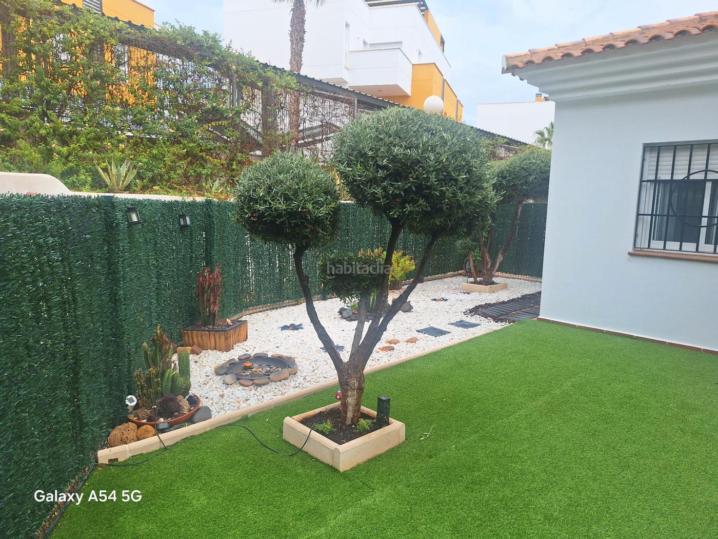 La vivienda está compuesta por 1 dormitorio con armarios empotrados, baño completo y cocina con barra al salón, el cual se abre a un jardín estupendo lateral en esquina, terraza con pérgola. Tiene buena orientación oeste, que hace que la vivienda sea muy luminosa y total tranquilidad.