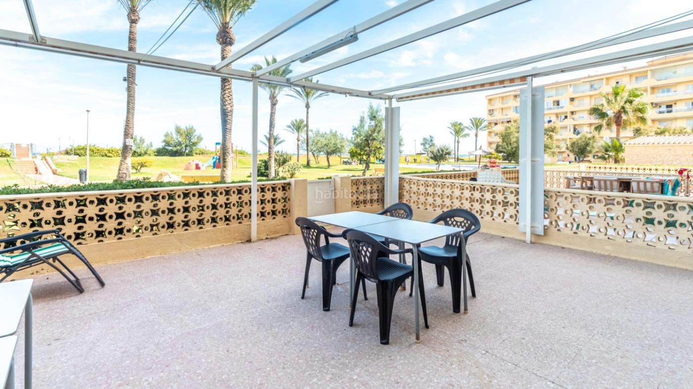 Descubre este encantador apartamento situado en una exclusiva urbanización con acceso directo a la playa. Ubicado en planta baja, ofrece la comodidad de una gran terraza privada que conecta directamente con los jardines comunitarios, ideal para disfrutar del aire libre y la tranquilidad del entorno.La vivienda cuenta con 3 amplios dormitorios, 2 baños completos, una cocina abierta totalmente equipada y un luminoso salón que se abre a la terraza. Está amueblado y listo para entrar a vivir, con aire acondicionado por splits y ventiladores en todas las habitaciones para garantizar el confort durante todo el año.La urbanización dispone de piscina, jardines cuidados, parque infantil y parking privado, todo ello con acceso directo al mar, lo que convierte esta propiedad en una oportunidad única tanto para residencia habitual como para inversión vacacional.Además, el apartamento ofrece vistas al mar, toldo en la terraza para mayor comodidad y una excelente orientación que garantiza luz natural durante todo el día.