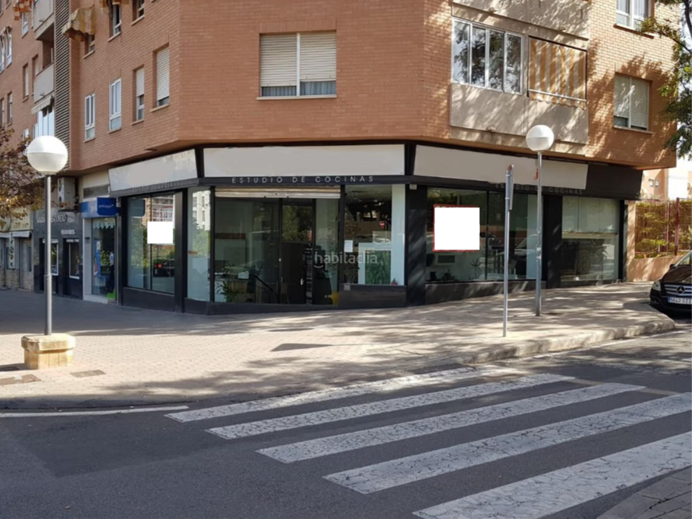 Fachada de 25 m en chaflán, con amplias cristaleras de 3 m de altura que garantizan luminosidad y una excelente exposición.