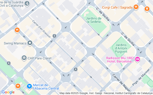 Cerca de líneas de metro (L4 Joanic, L5 Sagrada Família) y autobús, con acceso rápido a ejes como Passeig de Sant Joan, Travessera de Gràcia y calle Marina.