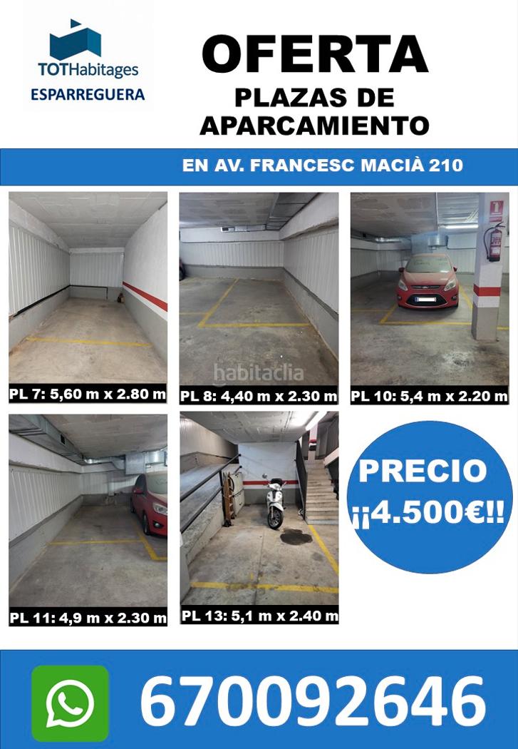 Se venden 5 plazas de garaje en una misma finca situada en Avenida Francesc Macià 210, en pleno corazón del pueblo.