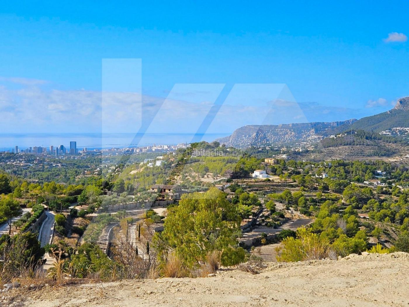Situada sobre una pequeña colina, la finca disfruta de un terreno de más de 6.000 m² que ofrece vistas panorámicas abiertas al mar Mediterráneo, al Peñón de Ifach en Calpe y a la Sierra de Bernia.