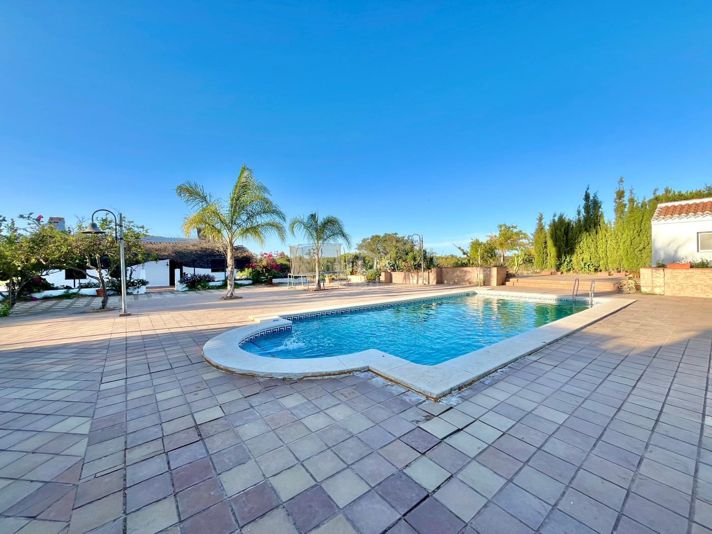 - Piscina de 10x 6 m, ubicada en zona pavimentada de ocio y descanso ,con orientacion suroeste, y equipada con casita exterior con aseo y ducha para mas comodidad.
