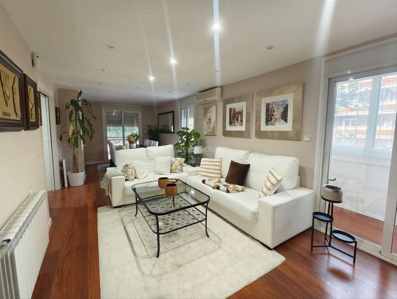 Suelos de tarima, ventanas de aluminio y climalit blanco en salón.