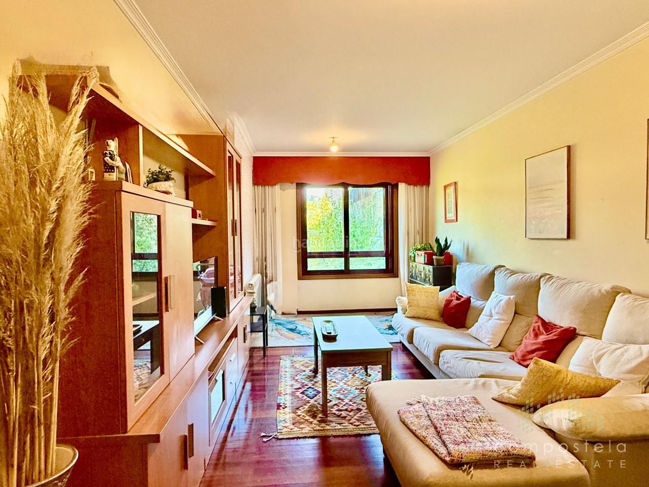 Destacamos además de este inmueble su ubicación al estar en una zona muy tranquila para vivir, cerca de colegios, parques, instalaciones deportivas y sanitarias, todas las comodidades del día a día a un paso de casa y a tan sólo 4 km del centro de la ciudad de Santiago de Compostela.