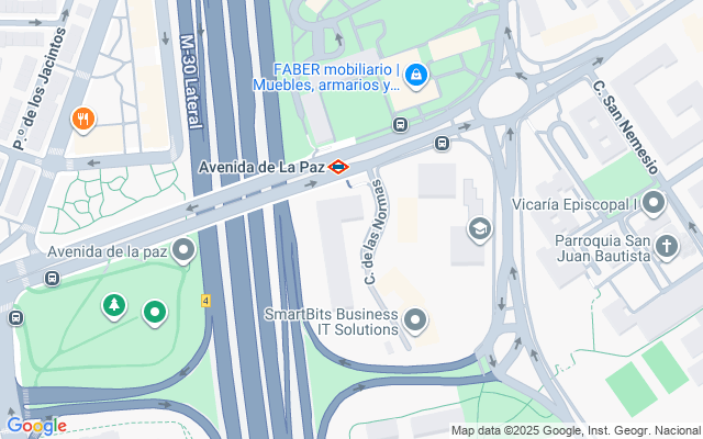 La ubicación de esta casa en el distrito de San Juan Bautista es magnífica: muy cerca de Arturo Soria y del Parque Félix Rodríguez de la Fuente, y rodeada de todos los comercios y servicios necesarios. Está muy bien comunicada gracias a que tiene en la puerta de la urbanización la estación de Metro de Avenida de la Paz (línea 4), cerca varias paradas de autobuses urbanos (9, 53, 72, 73, 120, N2) y un acceso inmediato a la M30.
