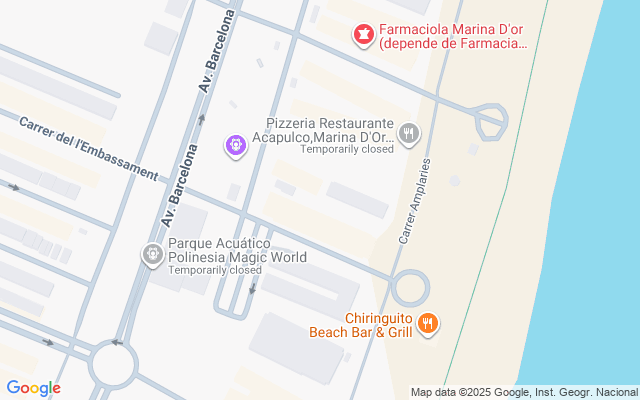 Desde el edificio se sale directamente a la playa sin cruzar ninguna carretera, ideal para familia con niños, a escasos metros del famoso Balneario Marina D or. Detrás del edificio está el parque acuático y un Mercadona.