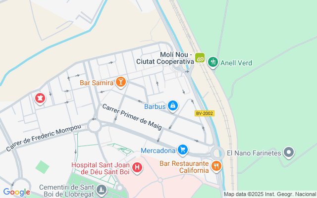 Muy bien comunicado por carretera (BV-2002) y transporte público. Junto a la estación de tren 'Molí Nou - Ciutat Cooperativa'.