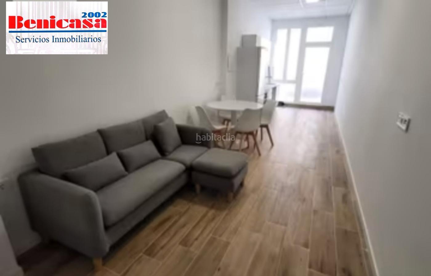 Benicasa vende excelente Estudio de 42m2, reformado a estrenar. Amplio, espacioso y techo altos a 3 metros. Cocina americana, salon-comedor, zona de habitación para cama matrimonial y gran baño adaptado según normativa a minusválidos. Fontanería, Electricidad, tabiqueria, suelo porcelánico imitación madera, con techo desmontable e iluminación led. Se entrega amueblado y equipado para alquilar mañana. (Cama y colchon de 1.50m, mesitas, comoda, sofa 3 plazas, mesa circular 90cms y 4 sillas).
