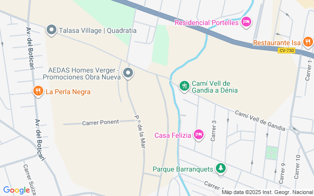Utilizando las coordenadas de la propiedad, se puede calcular la distancia a la playa más cercana y el aeropuerto. La playa más cercana es Les Deveses, a unos 2,5 kilómetros, un lugar ideal para tomar el sol, nadar y practicar deportes acuáticos. El aeropuerto más cercano es el de Alicante-Elche, a unos 102 kilómetros, lo que garantiza unas cómodas opciones de viaje para vuelos nacionales e internacionales.