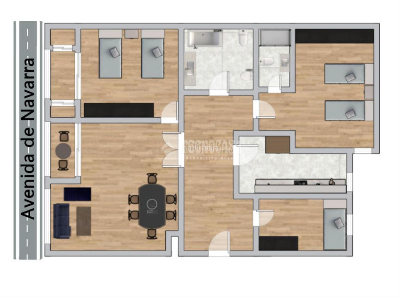 Tecnocasa de calle Delicias tiene el gusto de ofrecerles en exclusiva un piso de 3 dormitorios más salón, cocina y 2 baños en la fantástica y renovada Avenida de Navarra. Con posibilidad de garaje grande opcional por 25.000€!