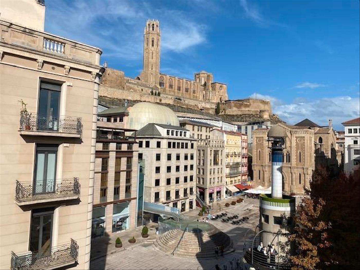 Excepcionales vistas a la plaza Sant Joan y a la Seu Vella.