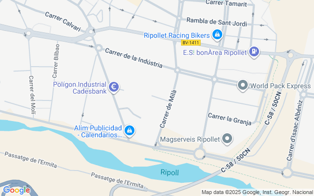 El inmueble se encuentra ubicado en el polígono industrial de La Magin Izquierda del Río Ripoll. Dispone de una superficie total de 5.856 m².