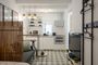 Espacio diáfano con zona de descanso, salón y cocina integrada