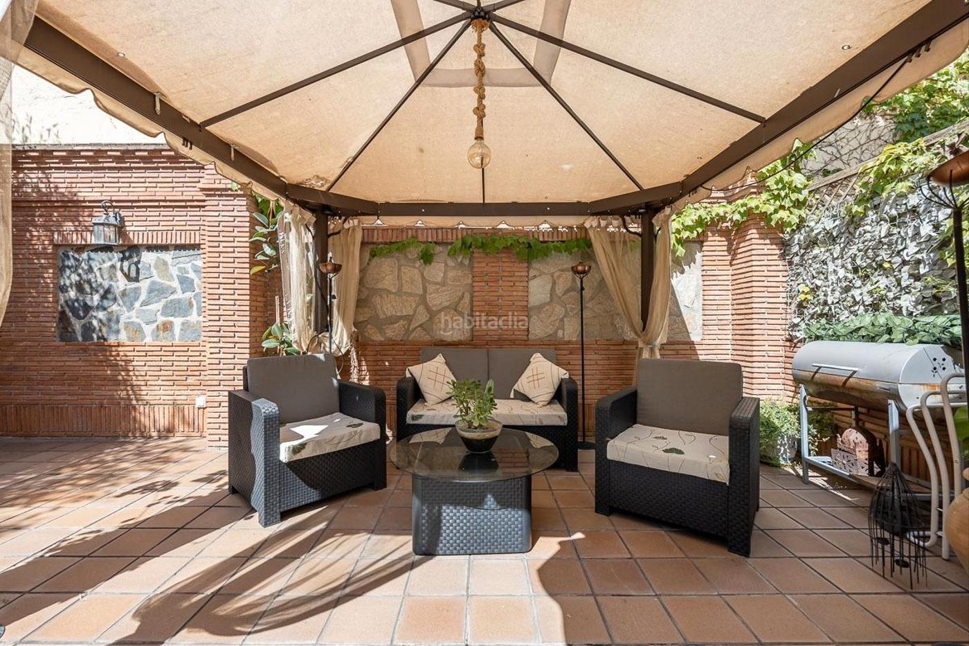 Un patio trasero orientado al sur, con zona de comedor, pérgola, fuente, vegetación consolidada y espacios de sombra, ideal para pasar largas noches de verano al fresquito o disfrutar de momentos de ocio con familiares y amigos Un verdadero oasis privado dentro de la ciudad.