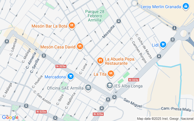 Frente a IES Alba Longa, Colegio Cervantes, a 200m del Mercadona, cerca del centro de salud, a 10 minutos andando del metro y El Comercial Nevada, buen acceso a la autovia,.....