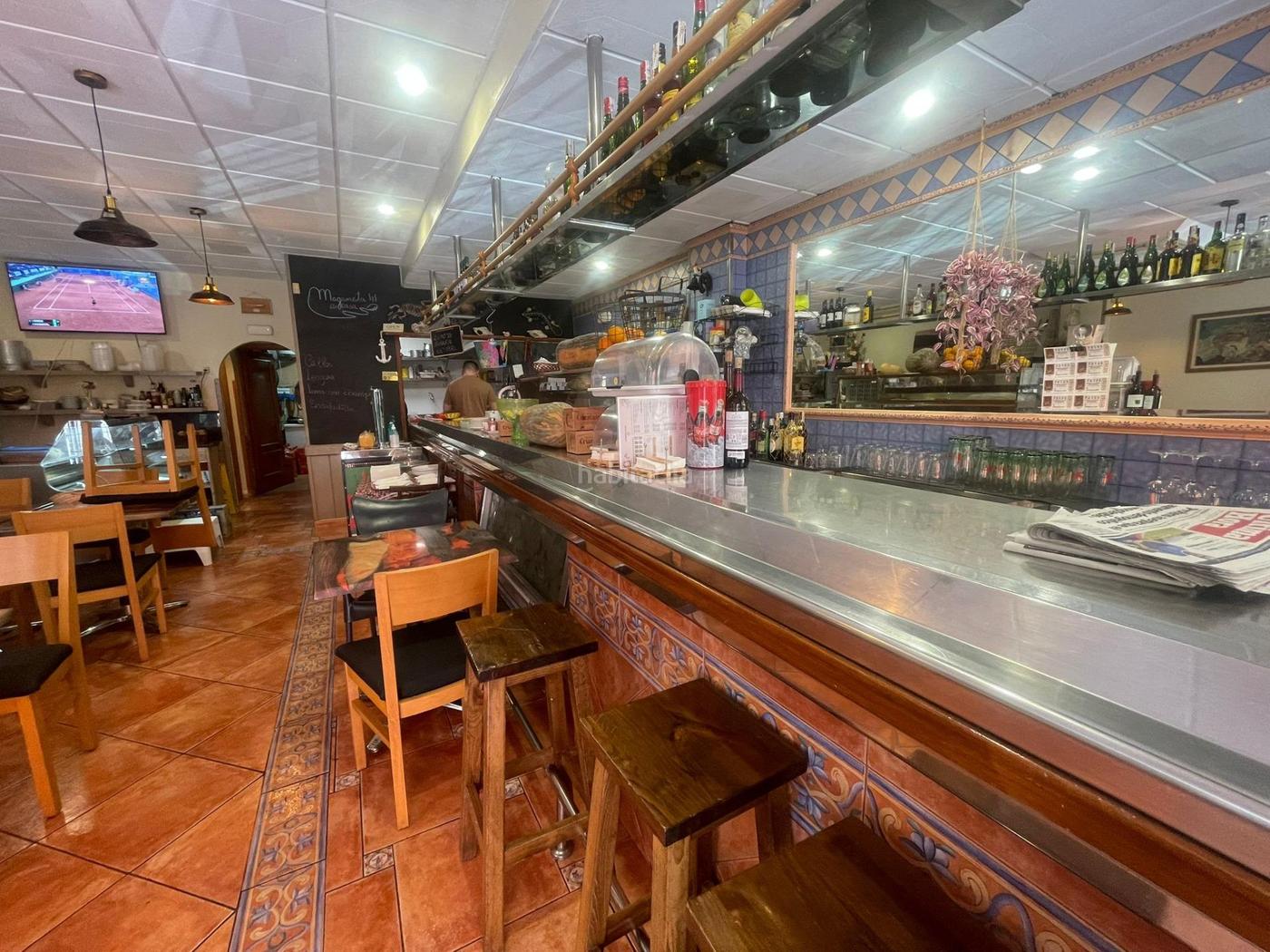 - Barra grande equipada (neveras, cafetera, lavavajillas, vitrina expositora)