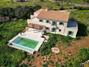La planta superior alberga tres dormitorios adicionales, dos de ellos con baño en suite. Dos de los dormitorios cuentan además con acceso directo a terrazas privadas en la azotea, desde donde se puede disfrutar de una vista espectacular del paisaje circundante y del mar. Los materiales cuidadosamente seleccionados, como los muros de piedra natural, las elegantes carpinterías de madera y los acabados de alta calidad, aportan a la propiedad un carácter especial y resaltan su exclusividad.