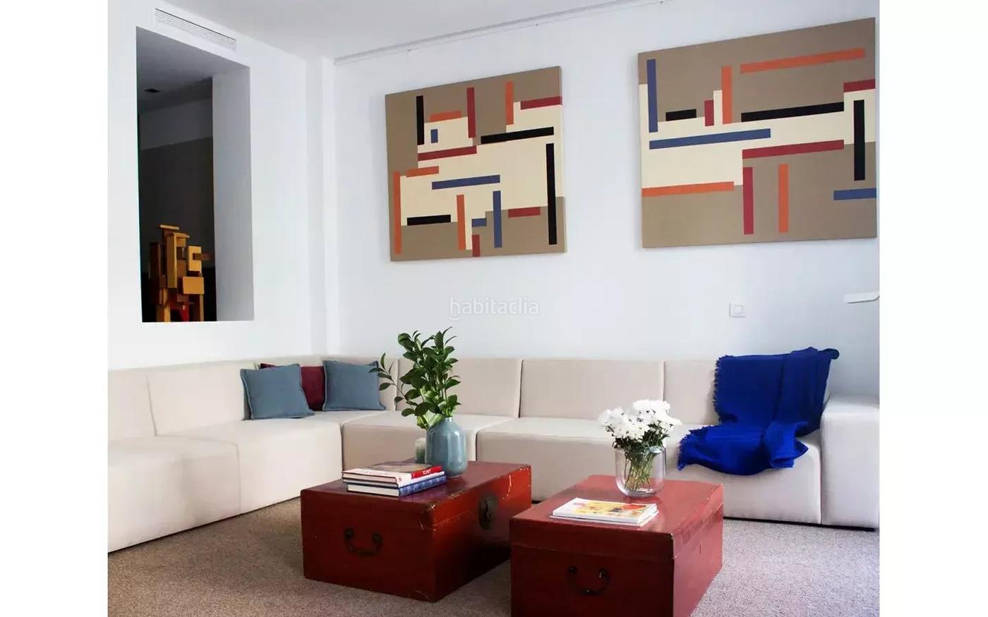 La vivienda ofrece un amplio comedor frente a una cocina abierta con isla, completamente amueblada y equipada con electrodomésticos y menaje. El salón, conectado de forma abierta al comedor, cuenta con un gran sofá en forma de L, un sillón y dos balcones con vistas privilegiadas a la Biblioteca Nacional.