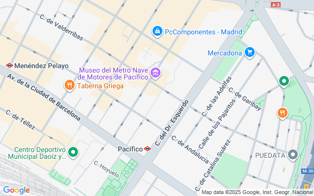 Pacífico, una zona con encanto en Madrid, ofrece varios puntos de interés en las inmediaciones. Disfruta de restaurantes cercanos como La Lonja y Serrín Ultramarinos, o compra lo esencial en el mercado Ahorramás. Pasea por la calle Cavanilles, el Arco de la Maestranza o visita otros lugares de interés como el Antiguo Vestíbulo de la Estación Pacífico y la Fuente de Chorros, todos situados convenientemente cerca del estudio.