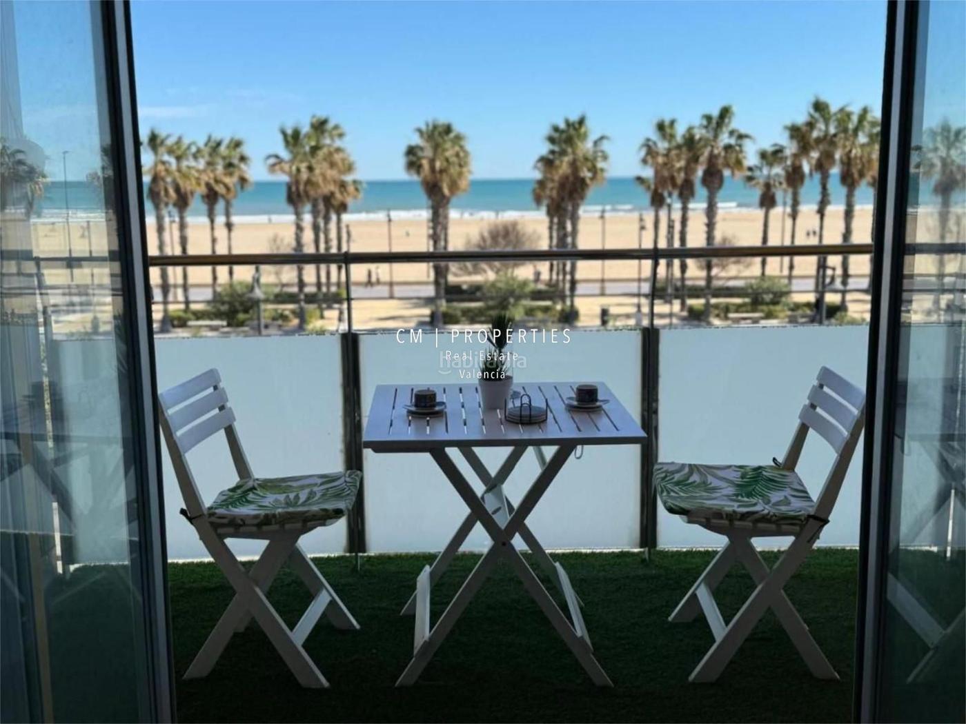 CM PROPERTIES presenta: Encantador apartamento frente al mar en El Cabanyal. Despierta cada mañana con vistas al mar Mediterráneo y disfruta de la serenidad que solo vivir junto a la playa puede ofrecer. Este acogedor apartamento, situado en primera línea de playa en el tradicional barrio marinero de El Cabanyal, es perfecto para quienes buscan confort, tranquilidad y una experiencia costera auténtica. Una terraza para disfrutar del Mediterráneo El balcón, equipado con mesa, banco y sillas, es el lugar ideal para desayunos al amanecer, cenas al atardecer o simplemente relajarse con la brisa marina y el sonido de las olas. Comodidad y funcionalidad en cada rincón. El salón es amplio y luminoso, con un cómodo sofá cama, Smart TV, aire acondicionado, radiadores, ventilador, lavadora y secadora. Todo está pensado para que tu estancia sea tan cómoda como en casa. La cocina, moderna y totalmente equipada, incluye cafetera, tostadora, hervidor de agua y todos los utensilios necesarios para cocinar con libertad