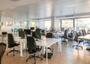 Oficina exterior de planta diáfana con mucha amplitud y luminosidad. Distribuida en un gran espacio open space, despachos y salas de reuniones, baños en el interior y zona de office.