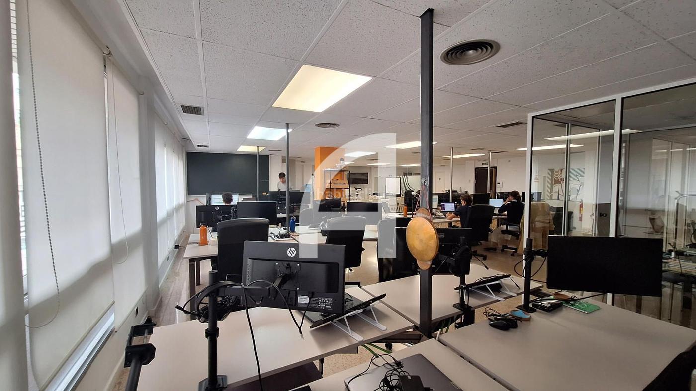 comunicada por transporte público (bus y Ferrocarriles). Aunque se trata de un barrio preferentemente residencial, en su entorno encontramos numerosos servicios, escuelas, clínicas, centros de formación, y oficinas. El edificio dispone de amplio vestíbulo de entrada, con servicio de conserjería en horario comercial. La superficie disfruta de dos accesos: uno directo desde la calle posterior (Camp d’en Vidal) y otro desde la finca. Está distribuida en un enorme espacio diáfano, con mucha luz natural, que permite ubicar numerosos puestos de trabajo, o dividirse a medida. También encontramos una sala de reuniones separada por mampara, así como dos aseos y un office. Dispone de falso techo registrable, pavimento de gres, y climatización.