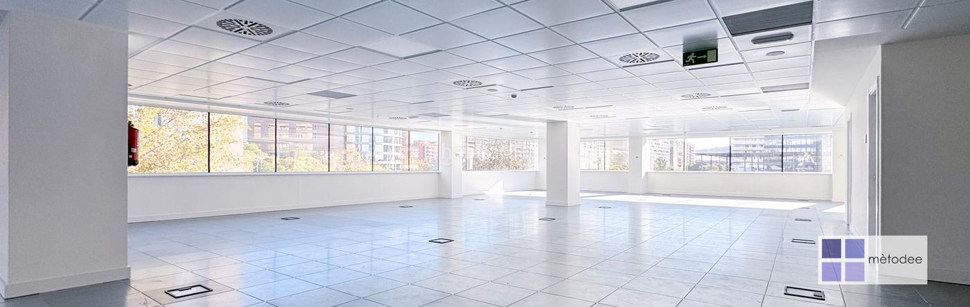 Se trata de una oficina con una gran zona diáfana (openspace) y con varios aseos como configuración base. Oficina muy luminosa tanto por sus grandes ventanales como por su orientación y altura de planta con vistas a toda la ciudad. Esta oficina se entregará totalmente diáfana, con suelo técnico personalizable todo a estrenar, falso techo metálico con luminarias LED y sistema de iluminación automática.