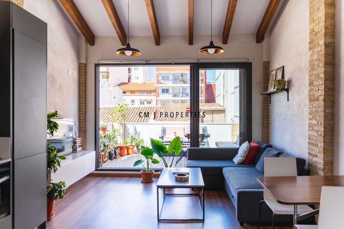 Disponible del 1 de enero al 1 de marzo de 2025. Alquiler de corta estancia. Exclusivo ático de diseño situado en una encantadora casa marinera en el corazón del Cabañal, uno de los barrios más auténticos y con más vida de Valencia.